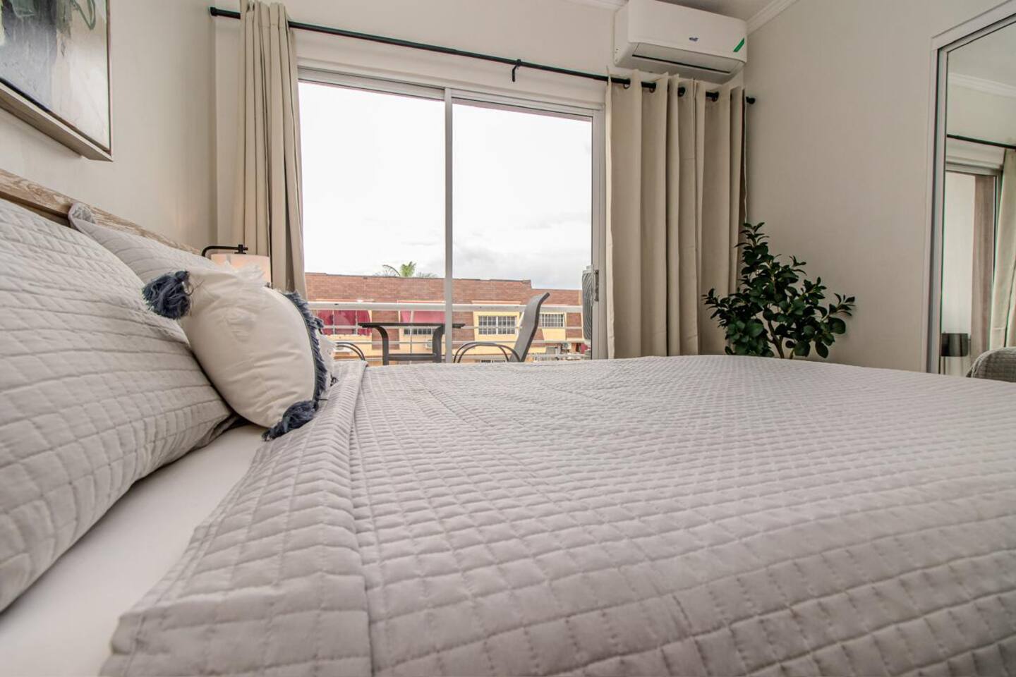 Discover the epitome of sophistication in our meticulously adorned two-bedroom condominium, nestled in the heart of the dynamic New Kingston area. Surrounded by an array of fine dining establishments, upscale grocery stores, convenient transportation options, and fitness facilities, this secure and stylish residence promises an unparalleled luxurious experience. Ensuring your peace of mind, the condominium boasts 24-hour security within a gated community. Unwind in opulence as you immerse yourself in the tranquil ambiance, despite its close proximity to the vibrant culinary and nightlife scene. A celestial infinity pool and a well-equipped gym enhance the exclusivity of this residence, offering a perfect balance of serenity and recreation. The interior exudes a contemporary charm, blending modern elements to create an inviting atmosphere suitable for both romantic escapes and productive business trips. Easily accessible from the airport or by car, the apartment offers a seamless transportation experience, complemented by readily available taxi services. Impeccably maintained, the spacious apartment features a fully equipped kitchen, a state-of-the-art 4K Smart TV with NETFLIX for indulgent rainy days, and high-speed Wi-Fi for seamless connectivity. LOCATION: Centrally positioned, this residence is mere minutes away from a plethora of attractions, including the historic Devon House, the iconic Bob Marley Museum, renowned restaurants, the bustling business district, vibrant nightclubs, and more. Elevate your stay with us and embrace the pinnacle of luxury living in Kingston. CAPACITY: Bedroom 1: A charming retreat with an attached balcony, perfect for 1-2 guests. Features a lavish Queen-sized bed for ultimate comfort. Bedroom 2: A spacious haven for 1-2 guests, boasting a luxurious Queen-sized bed. Impeccable Amenities: Enjoy the indulgence of fresh sheets, plush towels, and premium shower gel/soap. ABOUT THE CONDO: Scenic Views: Revel in panoramic vistas of the city and the majestic Blue Mountains. Spacious Comfort: Both rooms offer ample space, providing a comfortable and inviting atmosphere. Bathroom Bliss: Pamper yourself with a rainforest shower head in the walk-in shower for an unparalleled bathing experience. Tech-Ready: Stay connected with high-speed Wi-Fi and indulge in entertainment with a Smart TV. Fully Equipped Kitchen: Culinary excellence awaits in the beautifully designed kitchen, equipped with a stove, microwave, fridge (with freezer), kettle, toaster, and blender. Convenience Unmatched: Essential items like mugs, plates, pots, and cutlery are at your disposal. Local Delights: Explore the vibrant neighborhood filled with an array of bars and restaurants offering diverse culinary experiences. Surrounded by a myriad of bars and restaurants that beckon high-quality breakfasts, lunches, and dinners at unbeatable prices. From Jamaican and French to Italian, American, Indian, Chinese, Japanese, and a variety of vegetarian and vegan options, this locale caters to every palate, promising a culinary adventure just steps away. TRANSPORTATION: Convenient Mobility: Arrange for rental cars upon request. Easily accessible taxi services for seamless travel. Secure Parking: Enjoy the convenience of onsite assigned parking. NEIGHBORHOOD: Safety First: Experience the safety and centrality of our prime location. Entertainment Hub: Explore the vibrant nightlife with numerous clubs and bars in the vicinity. Culinary Delights: Indulge in the culinary excellence of excellent restaurants catering to various tastes. Ideal for Business Travelers: Perfect for business travelers seeking both luxury and practicality. WHAT IS INCLUDED: Pampering Essentials: Fresh towels, crisp sheets, and premium shower gel/shampoo. Tech and Comfort: High-speed Wi-Fi, Smart TV, hair dryer, iron and ironing board. Laundry Convenience: Washing machine and dryer for added convenience. Parking Perks: Onsite parking ensures your peace of mind. We look forward to hosting you soon and ensuring you experience the unparalleled charm of Kingston – truly an amazing city!