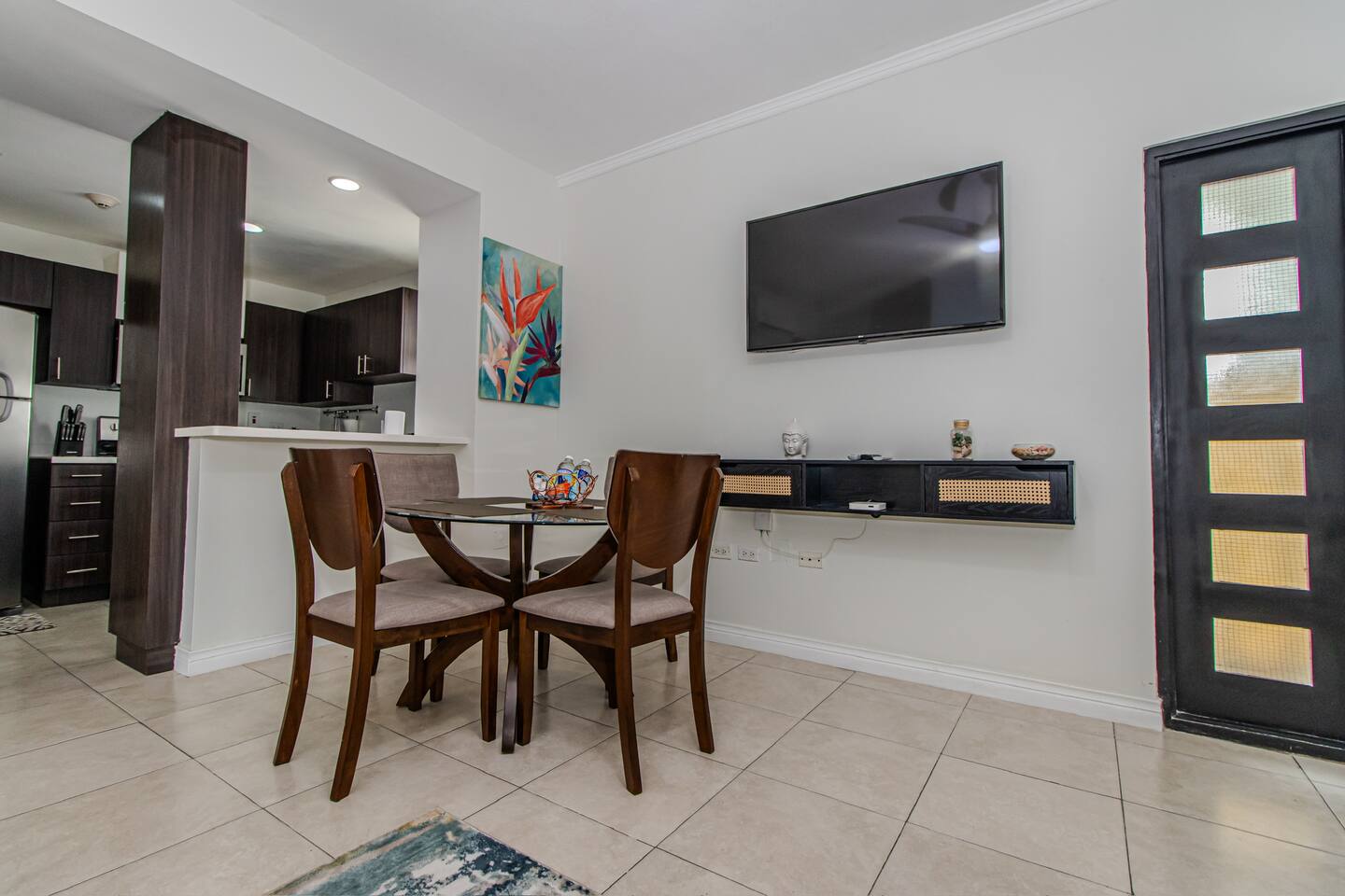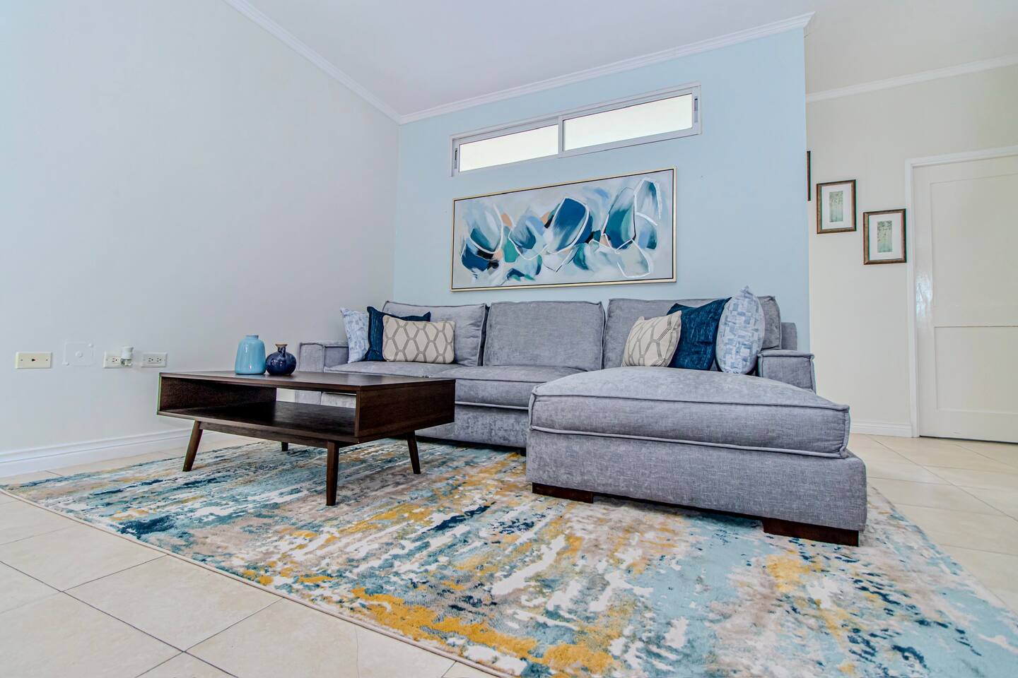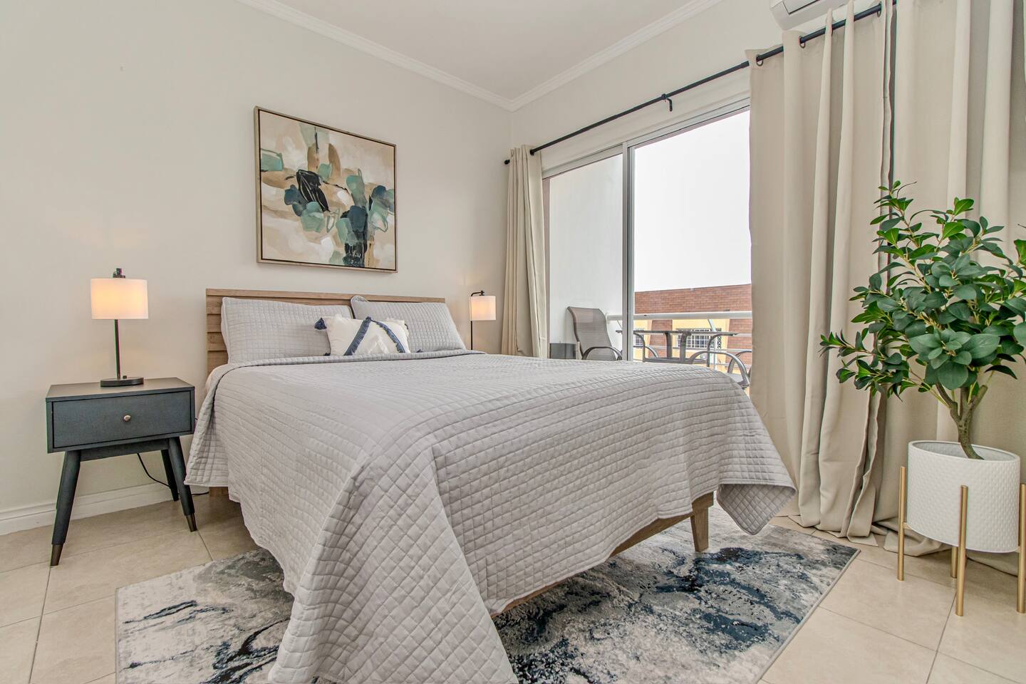 Step inside and feel the warmth of contemporary design, with carefully curated decor and furnishings that create an inviting and serene space. The open-concept living area is ideal for relaxing after a day of exploring or business meetings. Sink into the cozy sofa, enjoy your favorite shows on the large flat-screen TV, or take in the city views from the floor-to-ceiling windows. Prepare delicious meals in the fully equipped kitchen, complete with sleek appliances and ample counter space, perfect for those who enjoy cooking on their travels. The bedroom offers a tranquil escape with a plush queen-sized bed, soft linens, and generous closet space. Wake up refreshed and ready to embrace the energy of Kingston. The bathroom provides a spa-like experience with its spacious walk-in shower and modern finishes, while a private balcony offers a breezy spot for relaxation or alfresco dining. One of the standout features is the on-site pool, where you can unwind or lounge by the water amid lush landscaping that adds a tropical touch. Plus, the 24-hour gated security ensures peace of mind throughout your stay. Our condo’s prime location means you’re steps away from an array of restaurants and shops, from local Jamaican flavors to international cuisine. Enjoy nearby shopping centers, unique boutiques, and markets where you’ll find everything from local crafts to high-end brands. If you’re here on business, you’ll love the convenience of being close to major corporate offices and conference centers. After a productive day, enjoy a relaxing evening at your stylish condo or explore the city’s lively nightlife. Whether for business or leisure, our modern 1-bedroom condo offers the ideal Kingston experience. With a prime location, pool access, and 24-hour security, it’s the perfect place to call home. Book now and enjoy the best of Kingston!